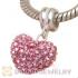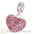 Sterling Silver European Dangle Fushia Austrian Crystal Heart Charm Beads