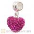 Sterling Silver European Dangle Pink Austrian Crystal Heart Charm Beads