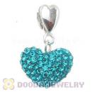 Sterling Silver European Dangle Blue Austrian Crystal Heart Charm Beads