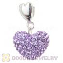Sterling Silver European Dangle Violet Austrian Crystal Heart Charm Beads