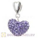 Sterling Silver European Dangle Purple Austrian Crystal Heart Charm Beads
