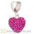 Sterling Silver European Dangle Pink Austrian Crystal Heart Charm Beads