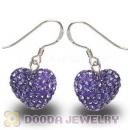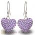 Pave Violet Czech Crystal Sterling Silver Heart Earrings Wholesale