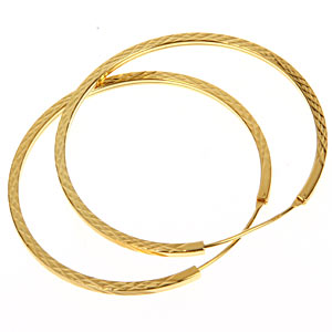 Wholesale 45mm Gold plated Sterling Silver Hoop Earring, each pair earrings are carved with special design figure, you can also adorn it with our european beads,use your imagination to make your earrings more unique and spotlight, for pierced ears only.