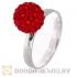 10mm Red Czech Crystal Ball 925 Sterling Silver Rings Wholesale