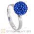 10mm Blue Czech Crystal Ball 925 Sterling Silver Rings Wholesale