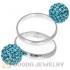 10mm Cyan Czech Crystal Ball 925 Sterling Silver Rings Wholesale