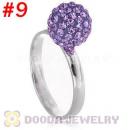 10mm Lavender Czech Crystal Ball 925 Sterling Silver Rings Wholesale