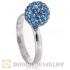 10mm Blue Czech Crystal Ball 925 Sterling Silver Rings Wholesale