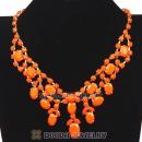 Chunky Multilayer Orange Resin Rhinestone Choker Bib Collar Necklace Wholesale