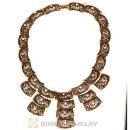 Resin Rhinestone Crystal Marquess Fleur Flower Choker Bib Necklaces Wholesale