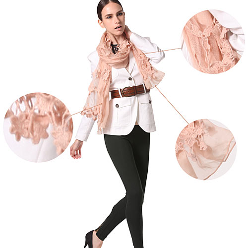 Fashion Office Lady Chiffon Pashmina Shawls Georgette Hollow Lace Scarf Wholesale1. Feature:This fashion office lady style chiffon pashmina shawl scarf are made of ultra light materals that feeling softest comfortable and smooth like the new baby skin, and design with lace flower, good for your skin and health, weat it as the cacrf of pashmina to adorn with your clothes, it will be the eye-catching element for you at the street or at the office. and or course, you can aslo have multi different colors wind together to have the special effect.(Tips:In order to maintain the adventage of cashmere shawl scarves ,please using warm water and mild scour to knead when washing.Never insulate under the sun or hightemperature,and iron when dried.)