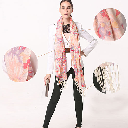100% Cashmere Wool Scarf Urban Retro Pashmina Scarves Shawl Wholesale1. Feature:This emerging Retro style fashion pashmina shawl scarf are made of 100% cashmere wool environmental materials, very soft and comfortable feeling. the laconic flower designer pattern are the feature of it. we suggest that adorn it with knitting coat or overcoat clothes to express the charming of scarf. and of course, you can aslo have multi different colors wind together to have the special visual impact. (Tips:In order to maintain the adventage of cashmere shawl scarves ,please using warm water and mild scour to knead when washing.Never insulate under the sun or hightemperature,and iron when dried.)