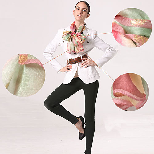 Fashion Office Lady Silk Scarf Textile Printing Pashmina Scarves Shawls Wholesale1. Feature:Wholesaler 2012 new arrival autumn and winter European Office Lady style pashmina scarves at competitive price, designed for those fashionable trendy women, Made of 100% real silk, very soft and comfortable feeling, ultra light texture like the elegant dancing butterfly, the ornaments gold cashew nuts will be the eye-catching element for you at street or party. showing graceful as the scarf, and charming as the pashmina shawl wrap stole, both fashion and warm, and of course, you can aslo have multi different colors wind together to have the special visual impact.(Tips:In order to maintain the adventage of cashmere shawl scarves ,please using warm water and mild scour to knead when washing.Never insulate under the sun or hightemperature,and iron when dried.)