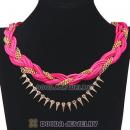 Gold Chain Pink Braided Leather Collar Necklace With Crystal And Rivet Wholesale