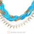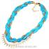 Gold Chain Braided Navy Leather Collar Necklace With Crystal And Rivet Wholesale