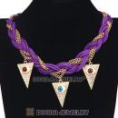 Ladies Braided Leather Evil Eye Pendant Collar Bib Necklace Wholesale