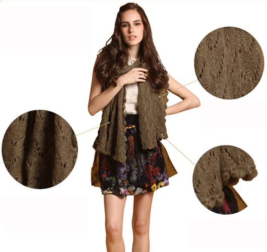 Made of exquisite spinning textile, very soft and comfortable feeling, with the graceful hollow wave knitting designer pattern, will be the eye-catching element for you. you can wear it as the scarves or pashmina shawls to adorn with your clothes, and of course more visual impact by wear two different colors scarves together.both fashion and warm.(Tips:In order to maintain the adventage of shawl scarves ,please using warm