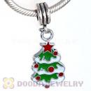 Platinum Plated Enamel European Christmas Tree Dangle Charms Wholesale