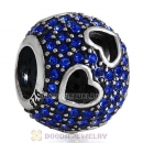 Sterling Silver Tumbling Hearts Charm with Sparkling Sapphire Austrian Crystal