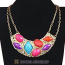 2012 New Fashion golden crescent resin geometry choker collar necklace wholesale, the golden color background crescent style inlay with gorgeous regular faceted geometry resin bead and bling crystal bead. multy color to choose.
