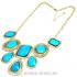 Wholesale brand new fashion chunky resin turquoise choker collar necklace, made of golden chain and large piece of cuts faceted resin turquoise in the geometry shaped. perfect design for your sweater, blouse, coat etc. clothes costume. multi color to choose.