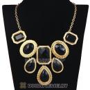 Wholesale brand new fashion chunky resin turquoise choker collar necklace, made of golden chain and large piece of cuts faceted resin turquoise in the geometry shaped. perfect design for your sweater, blouse, coat etc. clothes costume. multi color to choose.