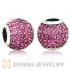 European Sterling Silver Fuchsia Pave Lights With Fuchsia Austrian Crystal Charm