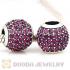 European Sterling Silver Fuchsia Pave Lights With Fuchsia Austrian Crystal Charm