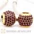 24 Karat Gold European Light Siam Pave Lights Charm With Light Siam Crystal