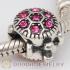 925 Sterling Silver European Turtle Charm Bead With Pave Fuchsia Austrian Crystal