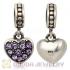 Sterling Silver European Hyacinth Pave Heart Dangle With Hyacinth Austrian Crystal