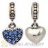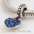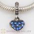 Sterling Silver European Blue Pave Heart Dangle With Blue Austrian Crystal