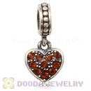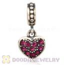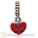 Sterling Silver European Light Siam Pave Heart Dangle With Light Siam Austrian Crystal