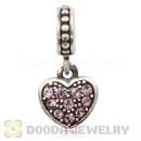 Sterling Silver European Light Rose Pave Heart Dangle With Light Rose Austrian Crystal