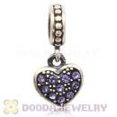 Sterling Silver European Violet Pave Heart Dangle With Violet Austrian Crystal