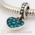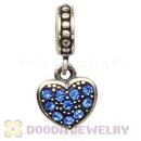 Sterling Silver European Sapphire Pave Heart Dangle With Sapphire Austrian Crystal