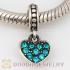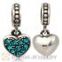 Sterling Silver European Aquamarine Pave Heart Dangle With Aquamarine Austrian Crystal
