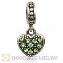 Sterling Silver European Olivine Pave Heart Dangle With Olivine Austrian Crystal