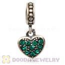 Sterling Silver European Emerald Pave Heart Dangle With Emerald Austrian Crystal