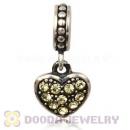 Sterling Silver European Jonquil Pave Heart Dangle With Jonquil Austrian Crystal