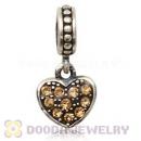 Sterling European Light Colorado Topaz Pave Heart Dangle With Light Colorado Topaz Austrian Crystal