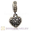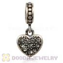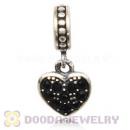 Sterling European Black Diamond Pave Heart Dangle With Black Diamond Austrian Crystal