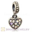 Sterling Silver European Light Amethyst Pave Heart Dangle With Light Amethyst Austrian Crystal