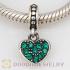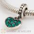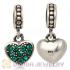 Sterling Silver European Olivine Pave Heart Dangle With Olivine Austrian Crystal