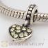 Sterling Silver European Olivine Pave Heart Dangle With Olivine Austrian Crystal
