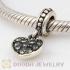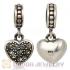 Sterling European Jet Hematite Pave Heart Dangle With Jet Hematite Austrian Crystal