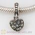 Sterling European Jet Pave Heart Dangle With Jet Austrian Crystal