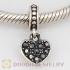 Sterling European Black Diamond Pave Heart Dangle With Black Diamond Austrian Crystal