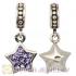 European Sterling Violet Pave Star Dangle With Violet Austrian Crystal